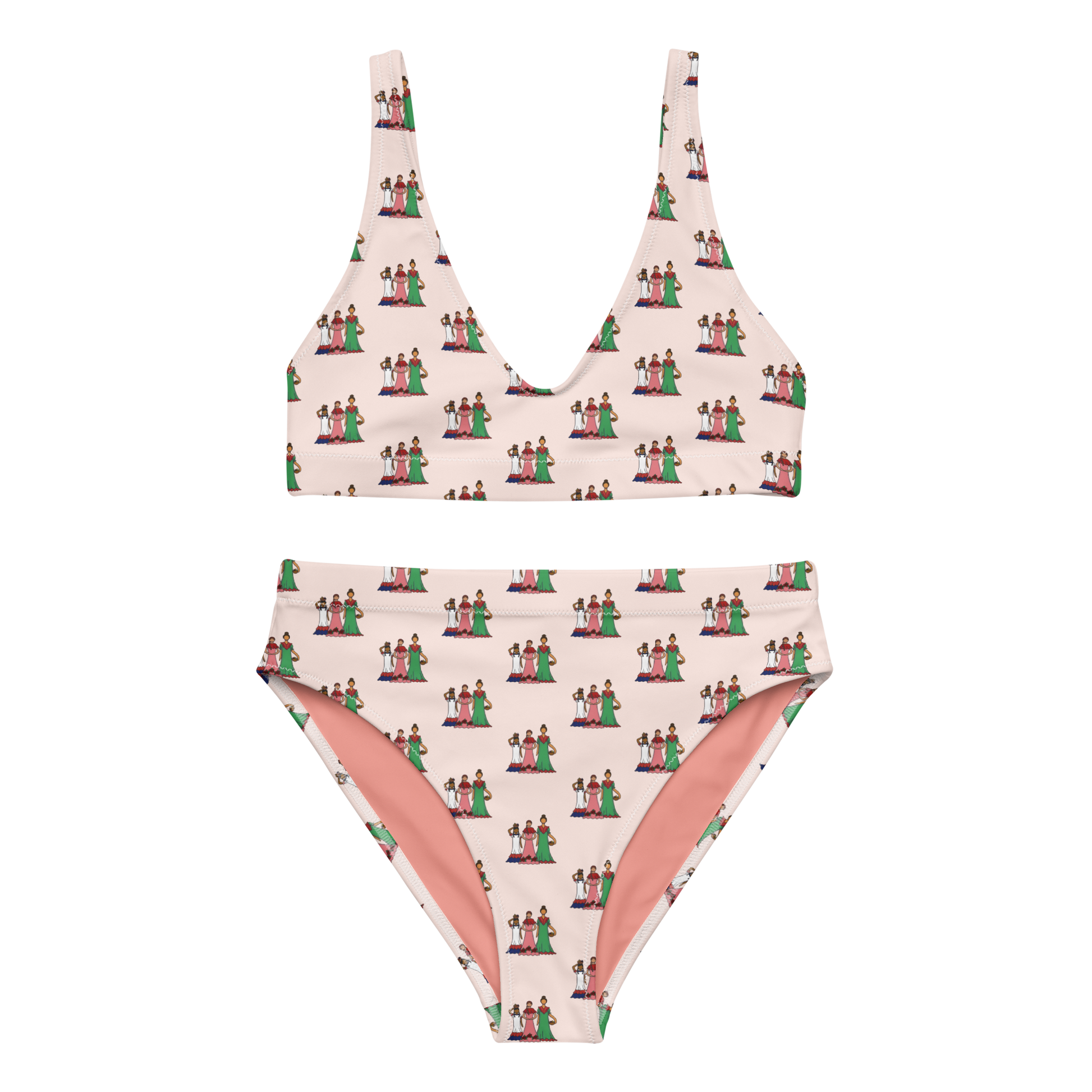 Dominican Faceless Dolls All-over Print high-waisted Bikini Swimsuit