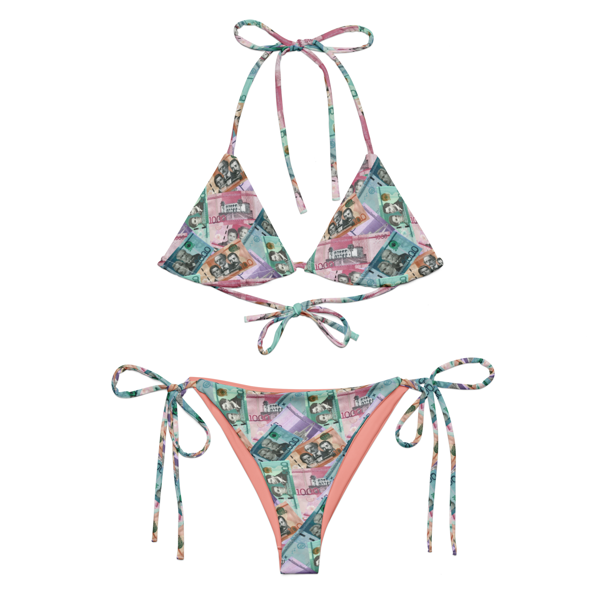 Dominican Pesos All-over Print Two Piece String Bikini Set Swimsuit